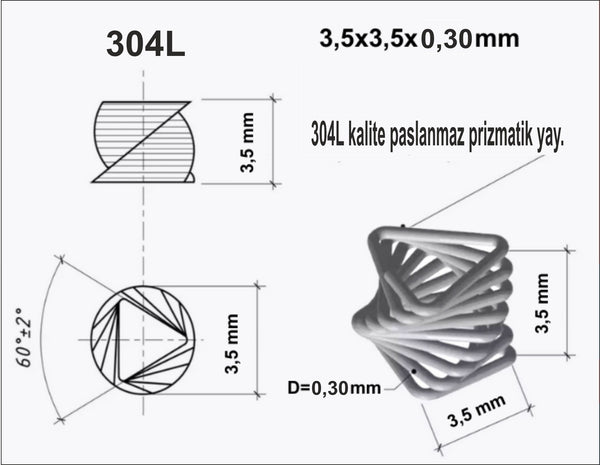 304L Paslanmaz Çelik Spiral Prizmatik Dolgu – Reflü Distilasyon Kolonları İçin Yüksek Verimli Dolgu Malzemesi (3.5 x 3.5 x 0.30 mm)